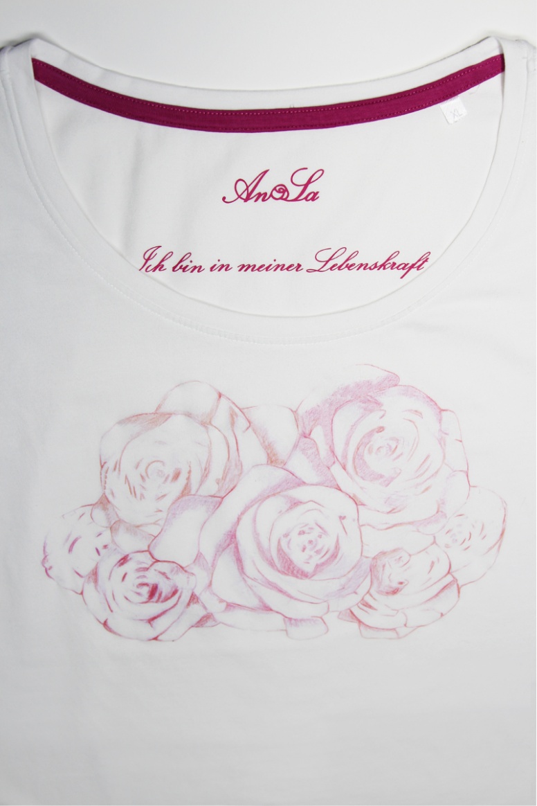 Rosen-T-Shirt - kräftiger Druck, kraftspendender Satz innen im Rückenteil